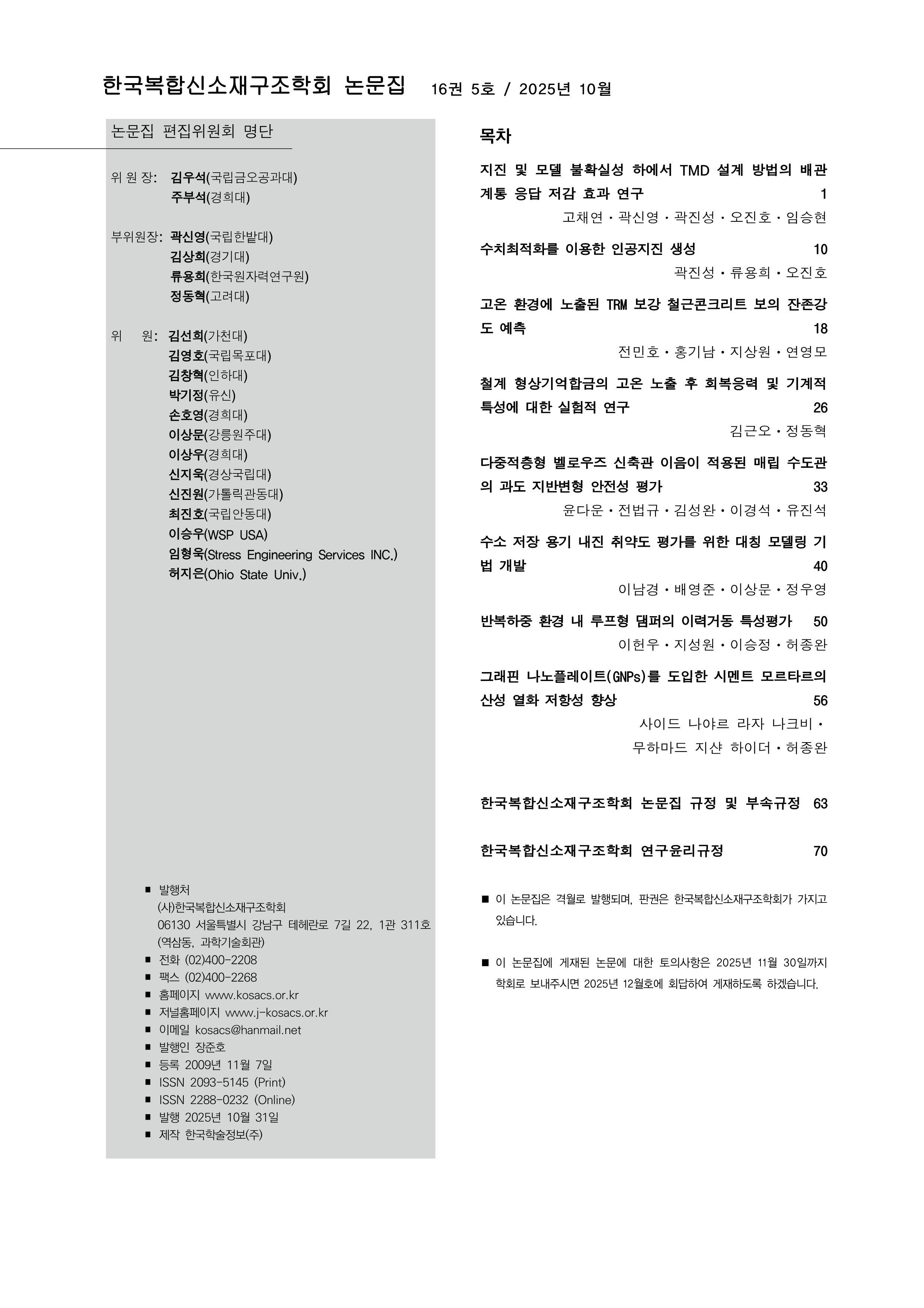한국복합신소재구조학회 논문집 통권 77권 Vol.16, No.5(2025년 10월호)이 발간되었습니다.